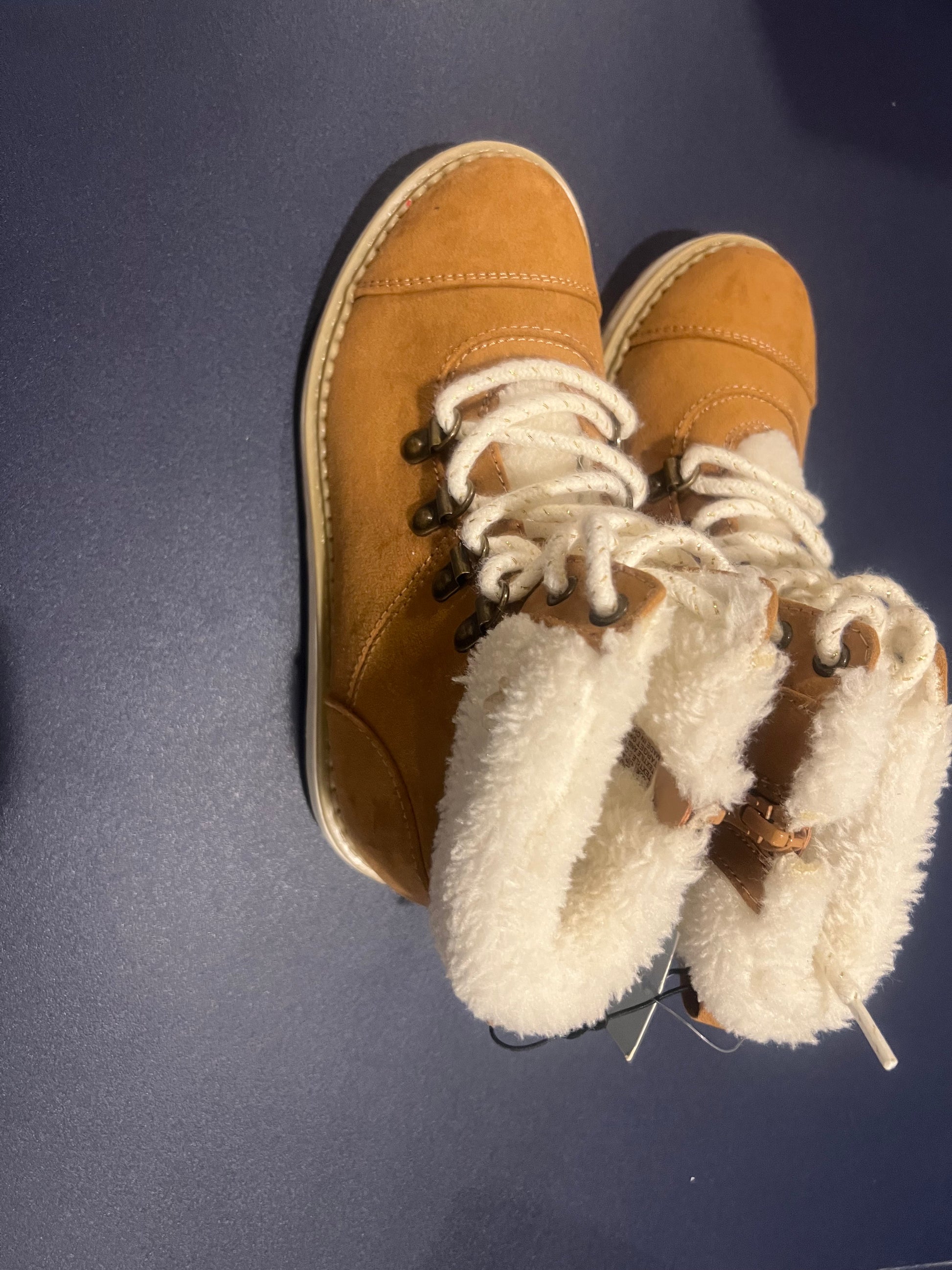 Cat & Jack Girl's-Rayne Zipper Slip-On Winter Shearling Style Cognac Boots - size 1